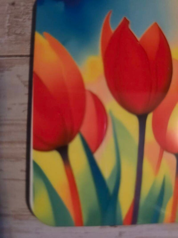 Add a pop of color to your space with our vibrant Tulip Garden Coaster Set, featuring bold floral artwork on durable cork-backed coasters. This 4-piece set is offered at a discounted price due to slight production imperfections — 2 of the coasters have minor off-centering, with a fine white border edge visible.