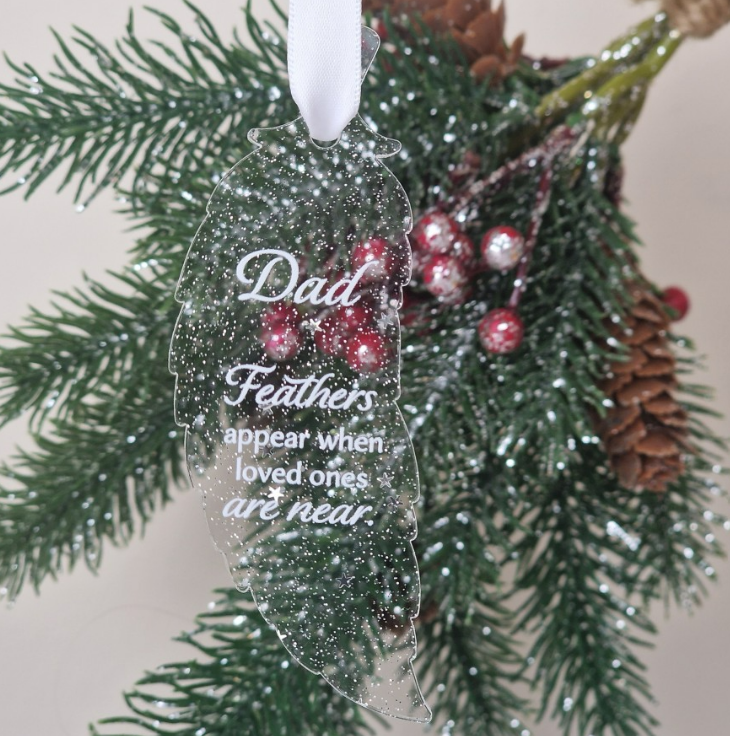 This personalised feather ornament serves as a gentle reminder that loved ones are always near, making it a meaningful keepsake to treasure year after year.