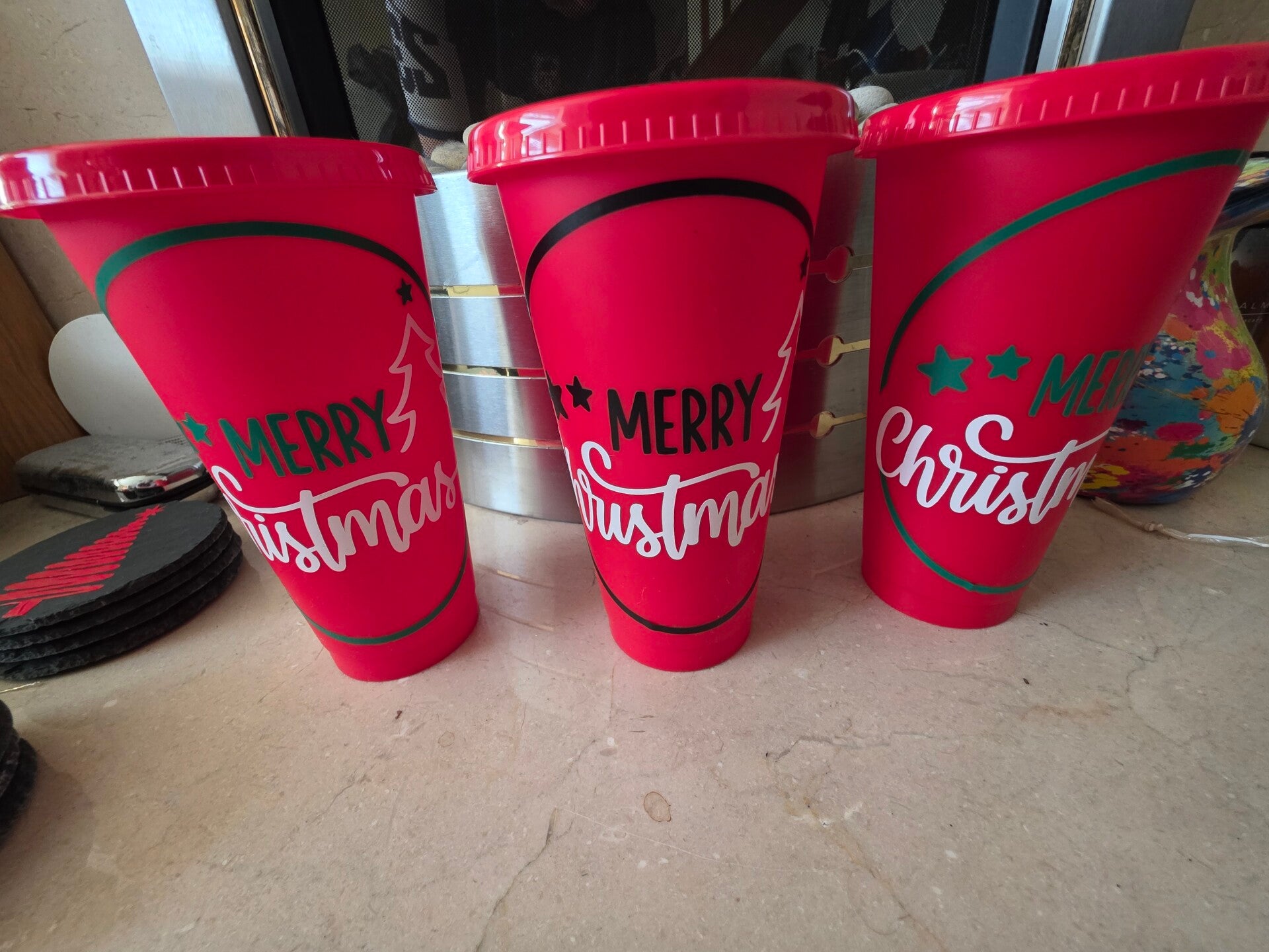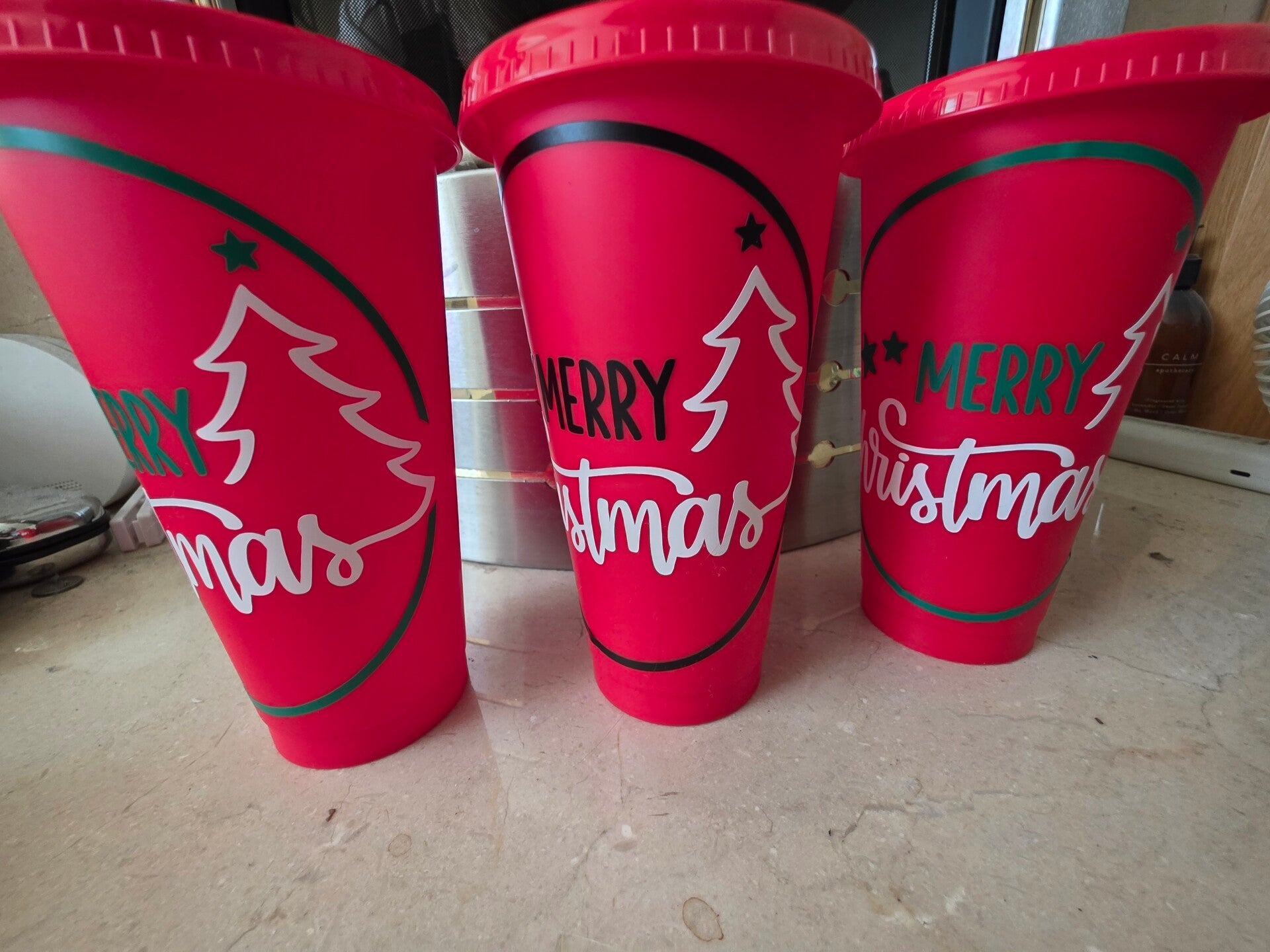 Add festive cheer to your everyday drinks with our 24oz Christmas Cold Cup, designed with a bold red finish and a stylish “Merry Christmas” vinyl motif. Perfect for iced coffees, cold beverages, smoothies, or holiday treats, this reusable cup brings a touch of Christmas spirit wherever you go.